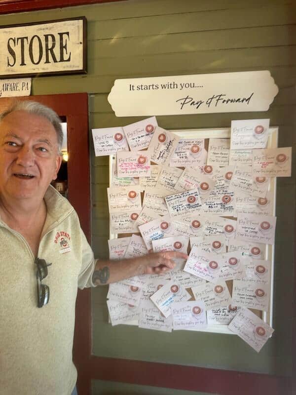 Spending the weekend in the Poconos with friends and ran into a cool Act of Kindness story. Visited the Shawnee General Store and while waiting for lunch at their fantastic deli, saw this...a board of "pay it forward" coupons people buy, name and hang. Each coupon has an amount and who can use it. I see $5 for any Nurse, free dessert for any teacher, free coffee for any fireman, free lunch if you love dogs, cappuccino for any red head etc etc